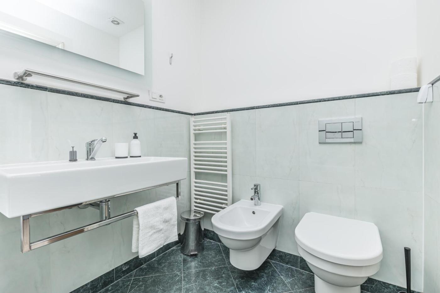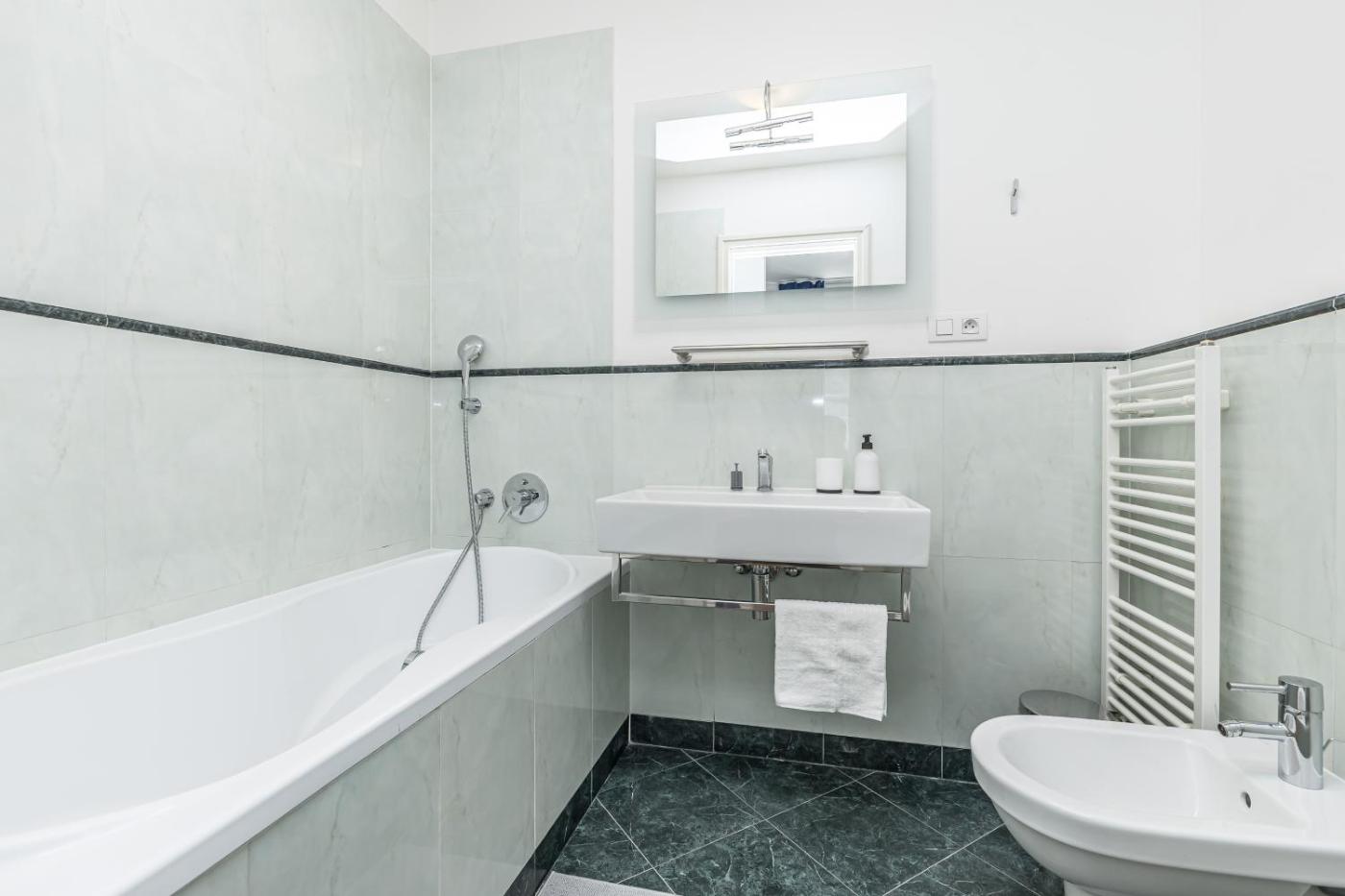 Apartmán Premium se 3 ložnicemi. This spacious apartment consists of 1 living room, 3 separate bedrooms and 2 bathrooms with a bath and a shower. The kitchen is equipped with a refrigerator, a dishwasher and a microwave. The apartment provides a washing machine, a tea and coffee maker, a dining area, a flat-screen TV, as well as city views. The unit offers 5 beds. ;